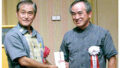 写真は左より、仲里町議会議長、古堅町長、平田青年部長、奥原・照屋・新垣部副部長(当時)